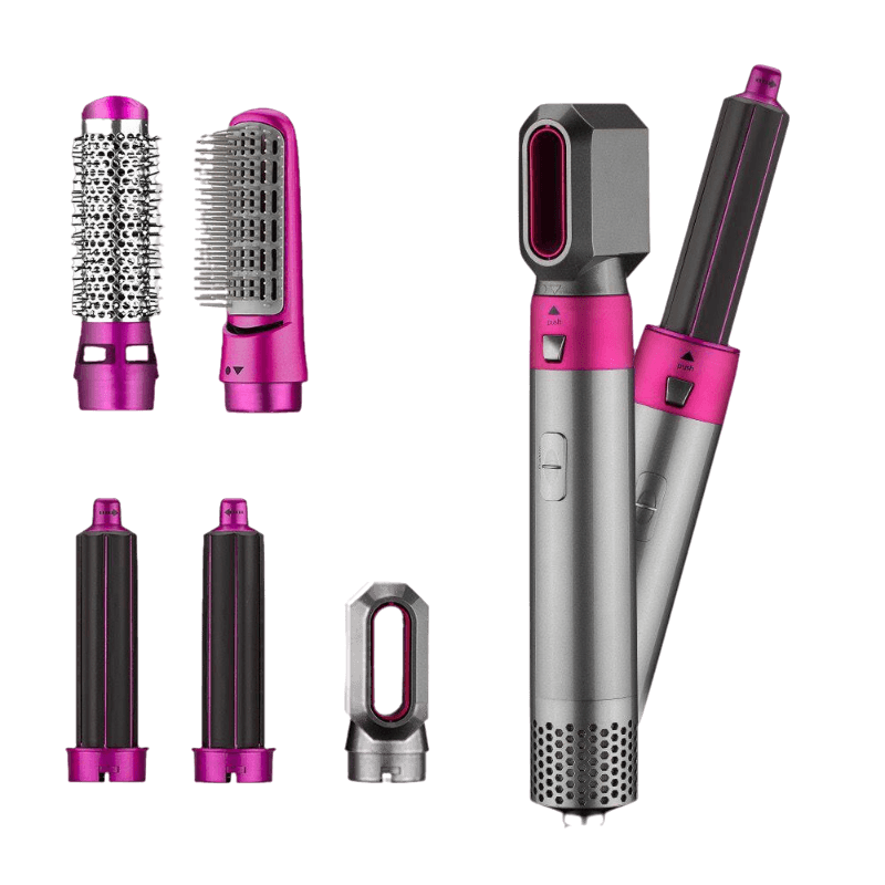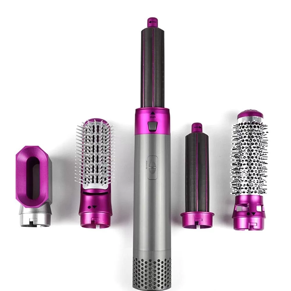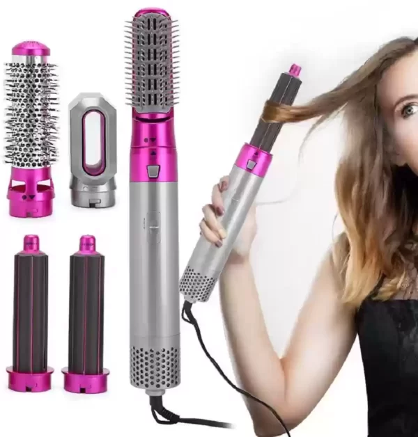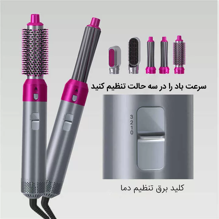 سشوار حالت دهنده ۵کاره دارای ۵سری مختلف دکمه درجه تنظیم سرعت و دما۳حالته ولتاژ ورودی:220_240ولت مناسب برای: خشک کردن،فر دادن،حجم دادن،صافه کردن و شانه کردن مو