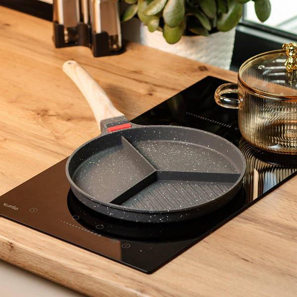 تابه ۳خانه گرانیتی درجه یک وارداتی/ضخیم و نچسب مناسب برای پخت همزمان چند نمونه غذا قطر ۲۵ سانت دسته نسوز